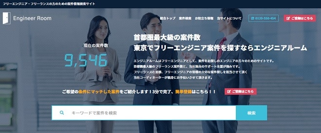 エンジニアルームは、首都圏のエンジニア案件に特化したフリーランスエージェントです。